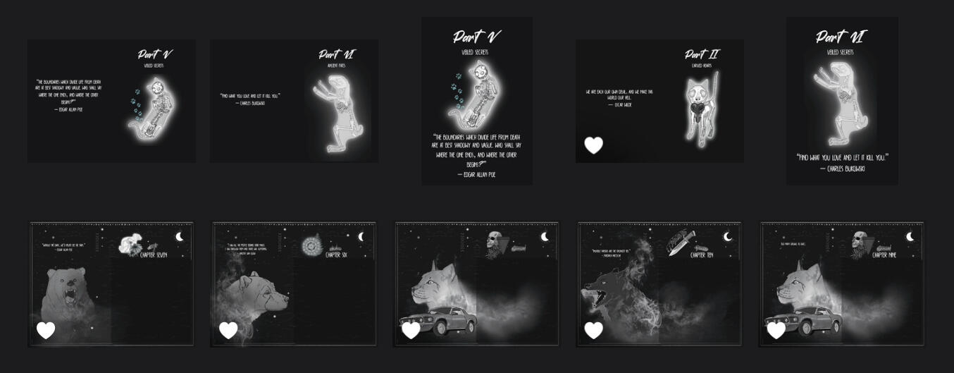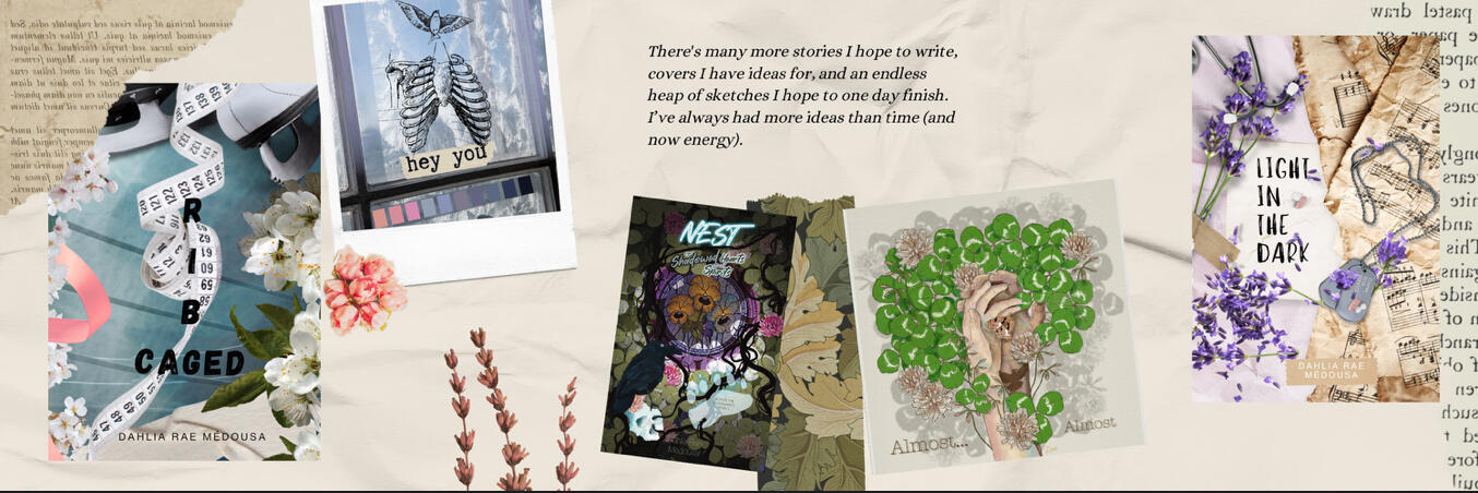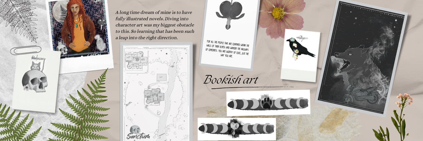 this site holds a portfolio of cover designs, formatting examples, and illustrations that I've made; this includes nature illustrations, sfw and nsfw character artwork, and book elements.